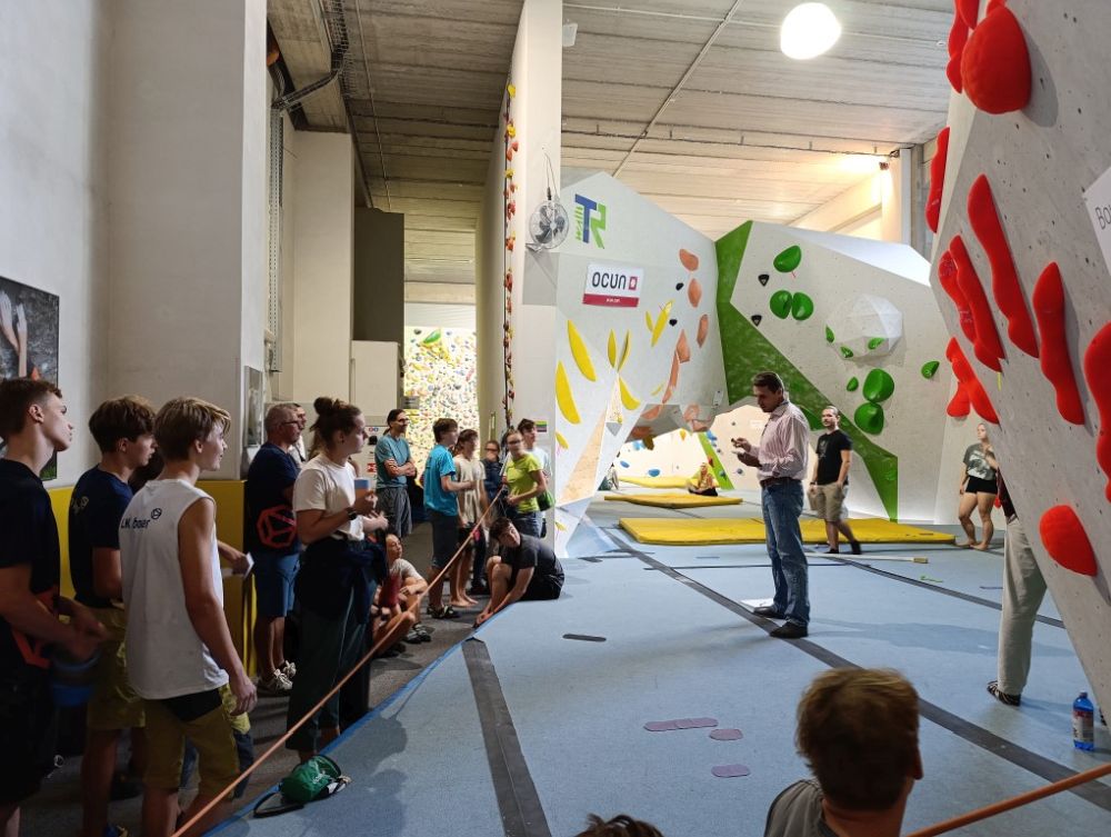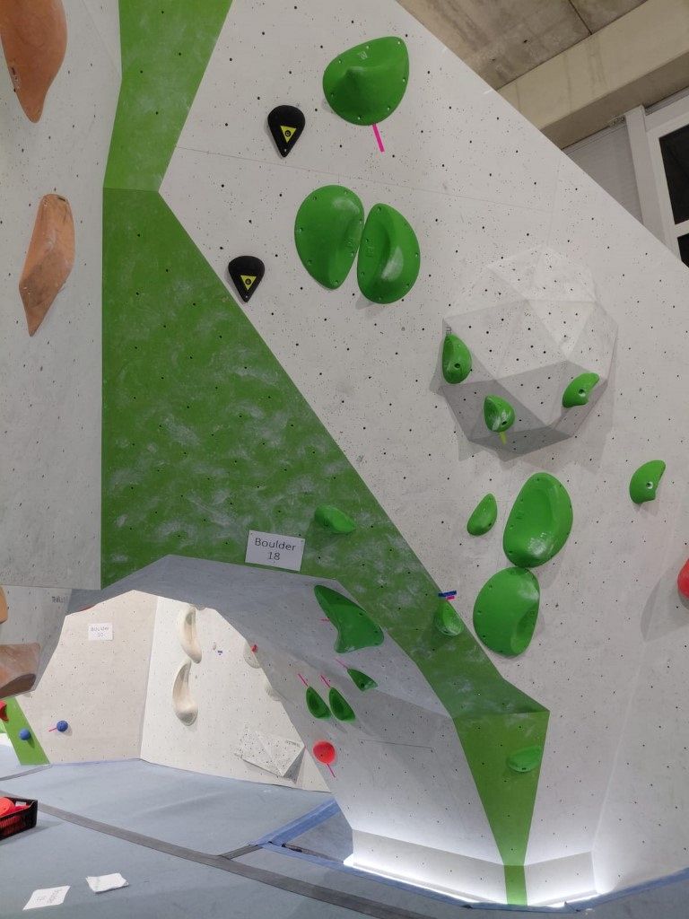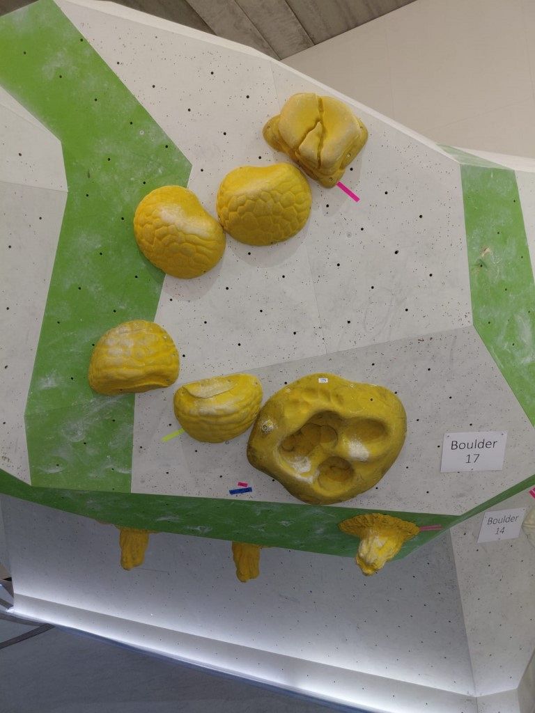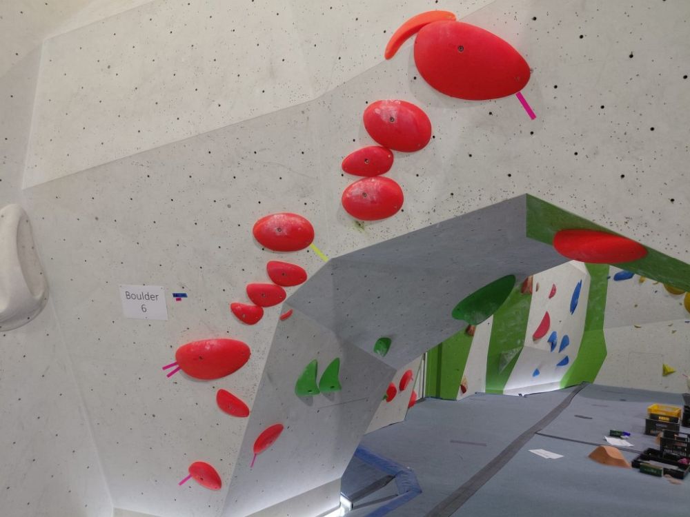 Spodní patro boulderu poskytlo ideální zázemí pro závodní prostory. Olča Stehlíková a Viktor Pařízek zde postavili sérii vizuálně poutavých, ale především technicky promyšlených boulderů, jež prověřily obratnost i sílu účastníků.