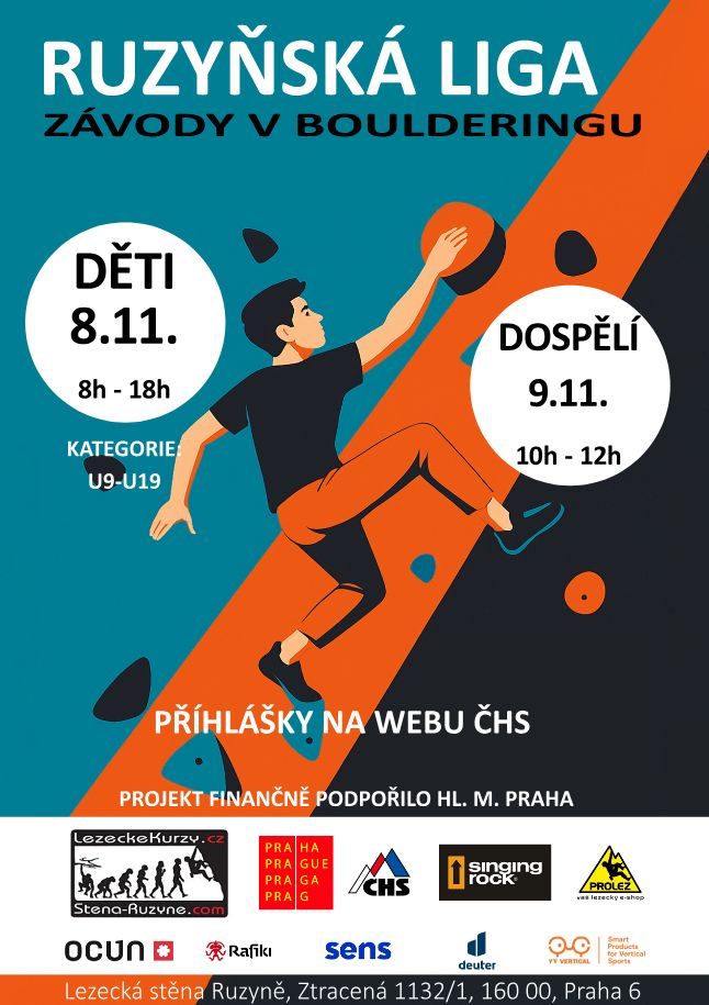 Závod pro děti 8.11. 3.liga - kategorie U9-U19 v čase 8h-18h - jednotlivé kategorie dle rozpisu. 7 bouldrů, bez finále.