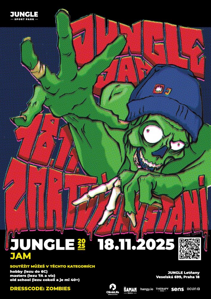 V úterý 18. listopadu se vrací Jungle Jam – poprvé pod střechou Jungle Letňany. Téma „Zombie & Zmrtvýchvstání“ slibuje bouldering, kostýmy, ceny i atmosféru, kterou jinde nezažiješ.