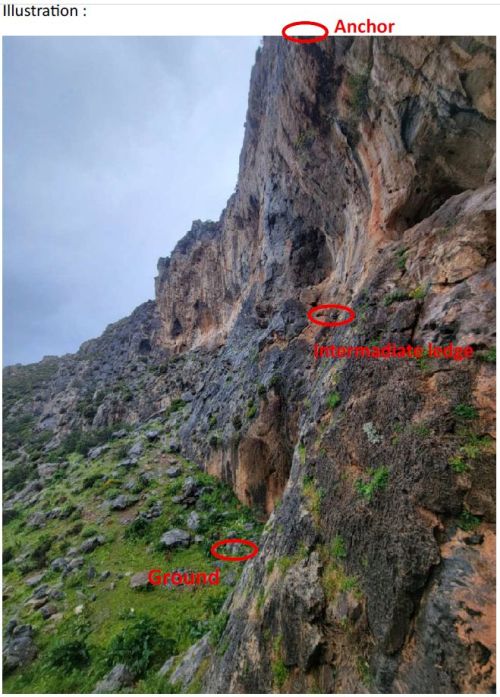 Náhle došlo k selhání slaňovacího bodu a oběť se zřítila.