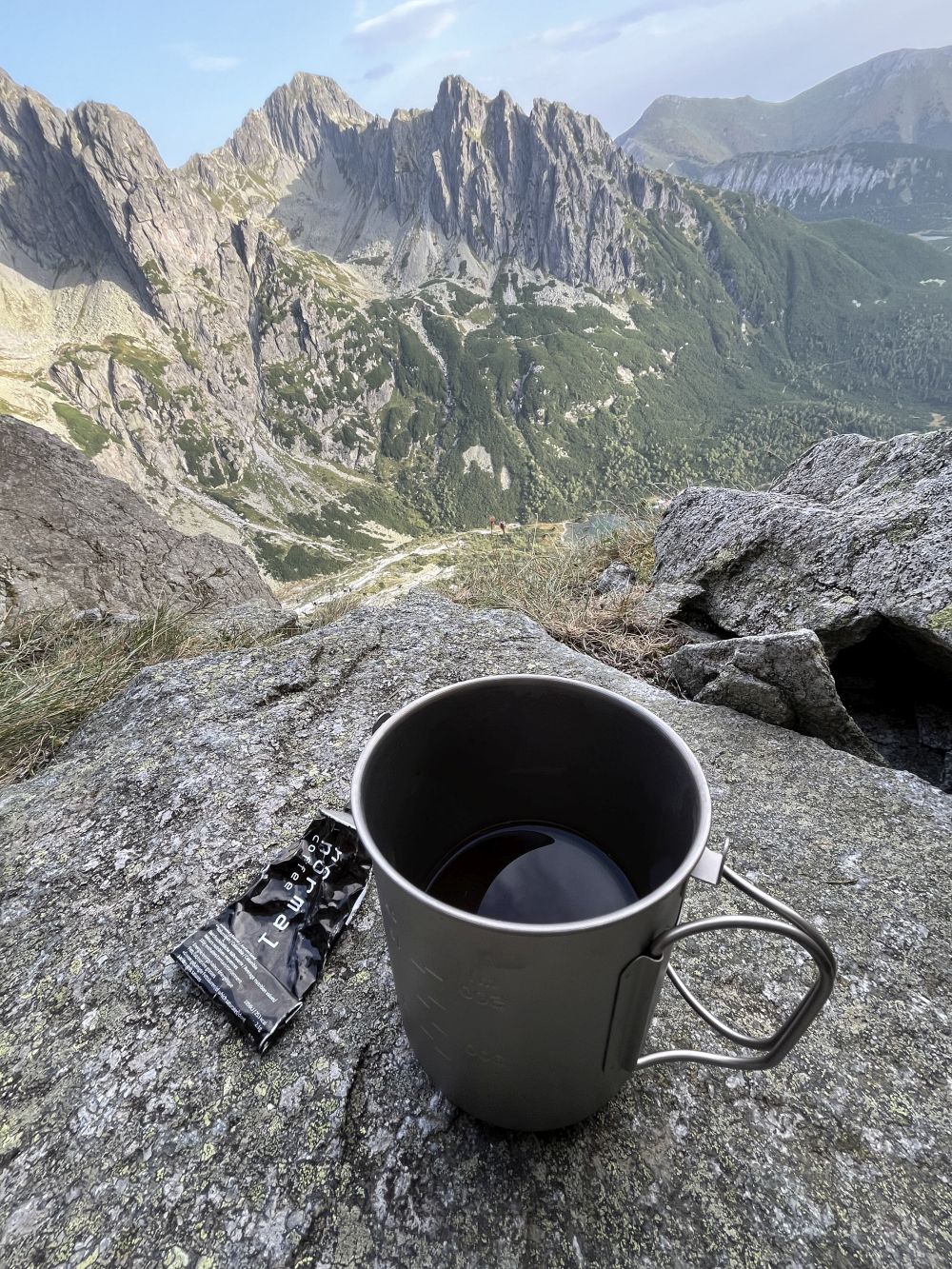 Ok, takže je potřeba zabojovat. Chybí pár délek, ale kumulovaná únava začíná dost působit. A to nemluvím o tom, že už nevydržím, resp. pata/kotník v lezečce. Nůž na nařezání lezčky nebo brufen ale nechávám zatím na horší situaci. Mám totiž ještě sebou nějaký kofein… Vrchol. K tomu není třeba nic psát…