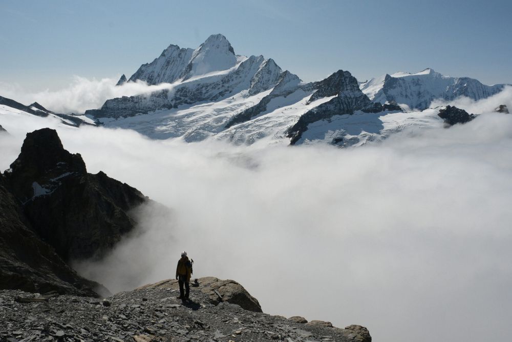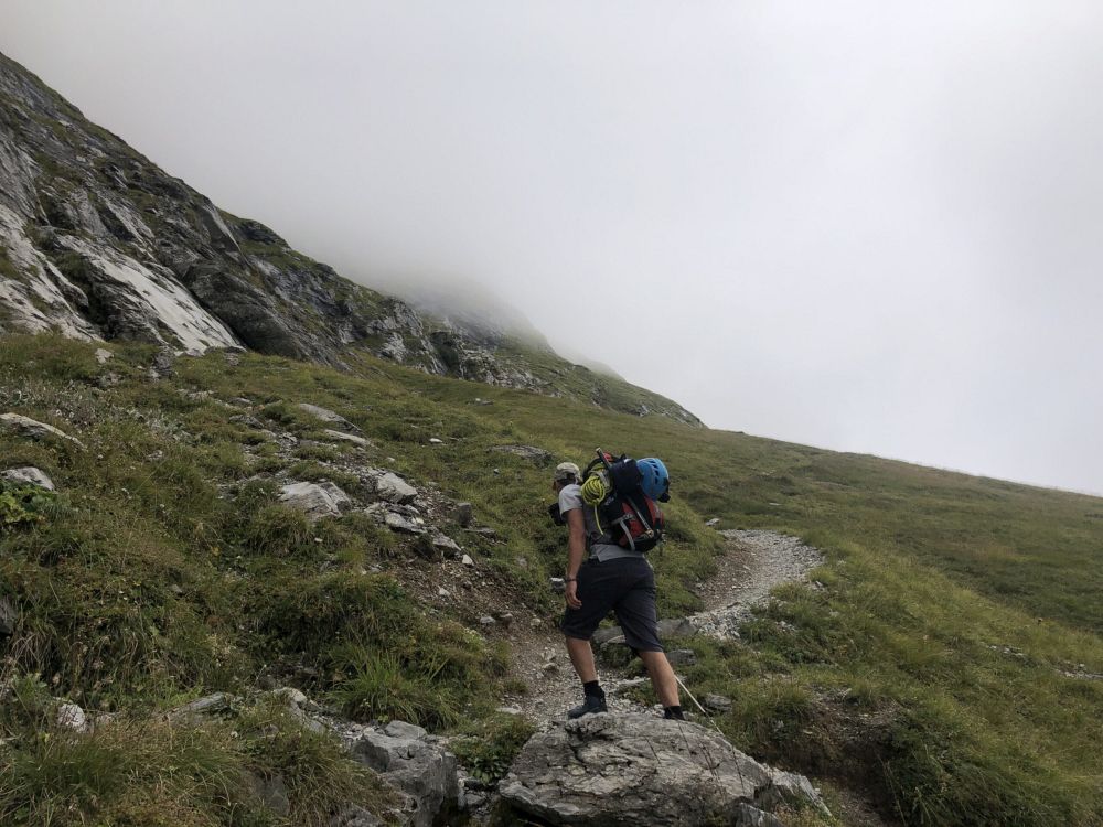 Právě na Willsgrätli začínáme náš lezecký scramble a potkáváme první skupinu s guidem, která se kvůli zdravotním problémům vrací. Jejich průvodce nám říká to, co už víme…. a sice že jsme ztratili hodně času.