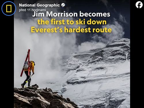 Po letech plánování se americkému horolezci Jimu Morrisonovi včera podařilo sjet na lyžích severní stěnu Mount Everestu (8848 m) po nejnáročnější a nejméně přístupné linii, která spojuje Hornbeinův kuloár a Japonský kuloár.