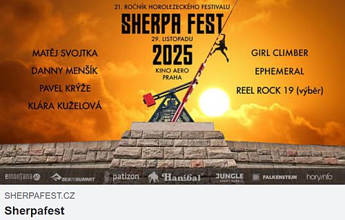 21. ročník horolezeckého festivalu Sherpafest se chystá přespříští sobotu 21. listopadu v pražském kině Aero. Podrobný program a možnost zakoupení vstupenek viz stránky festivalu: