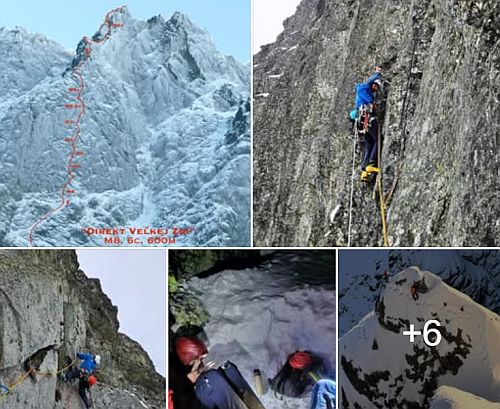 Slováci Adam Kaniak, Stanislav Filkor a Čech Karel Nováček přelezli 20.-22.12.2025 se dvěma bivaky novou (či částečně novou) cestu Direkt Velké Zdi za M8 6c, 600 m na severovýchodní stěně Rumanového štítu (2428 m) ve Vysokých Tatrách.