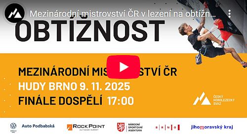 Mistrovství České republiky v lezení na obtížnost pokračuje dnes od včerejška v Brně finálovými koly. Akce se odpoledne vysílá živě na Youtube. ... celý článek