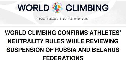 Výkonná rada World Climbing (mezinárodní lezecká závodní federace, dříve IFSC) v únoru zrušila pozastavení členství ruské a běloruské federace a umožní jejich sportovcům závodit na mezinárodních závodech v lezení. Obě federace, jejichž suspendace byla původně nařízena v březnu 2022, byly nyní znovu přijaty na základě potvrzujícího dopisu zaslaného příslušným prezidentům, informuje World Climbing. ... celý článek
