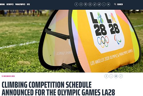 Mezinárodní federace sportovního lezení (IFSC) oznámila harmonogram závodů pro olympijské hry v Los Angeles 2028. Lezení je na programu od 24. do 29. července 2028 v Long Beach Climbing Theater. ... celý článek